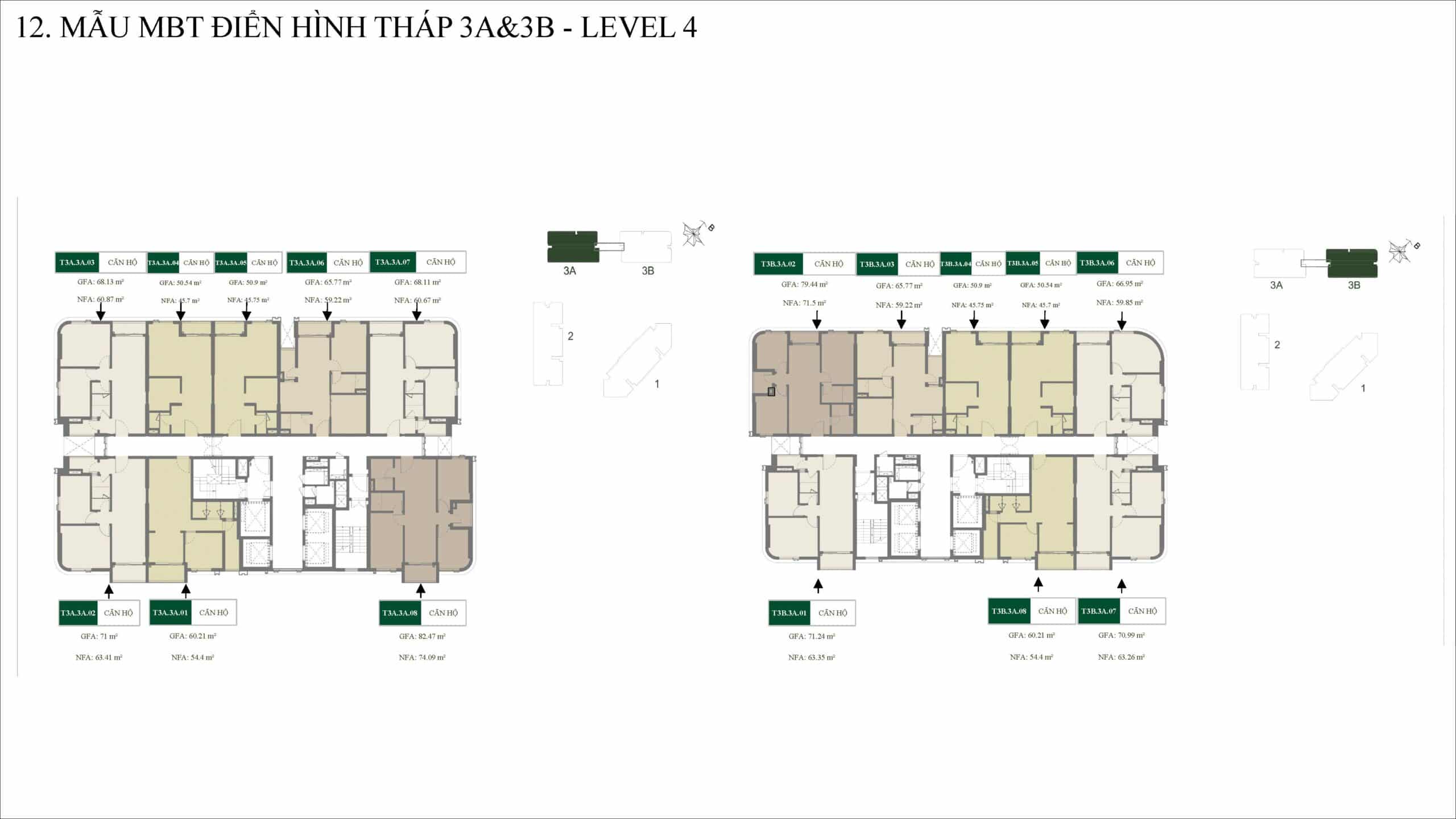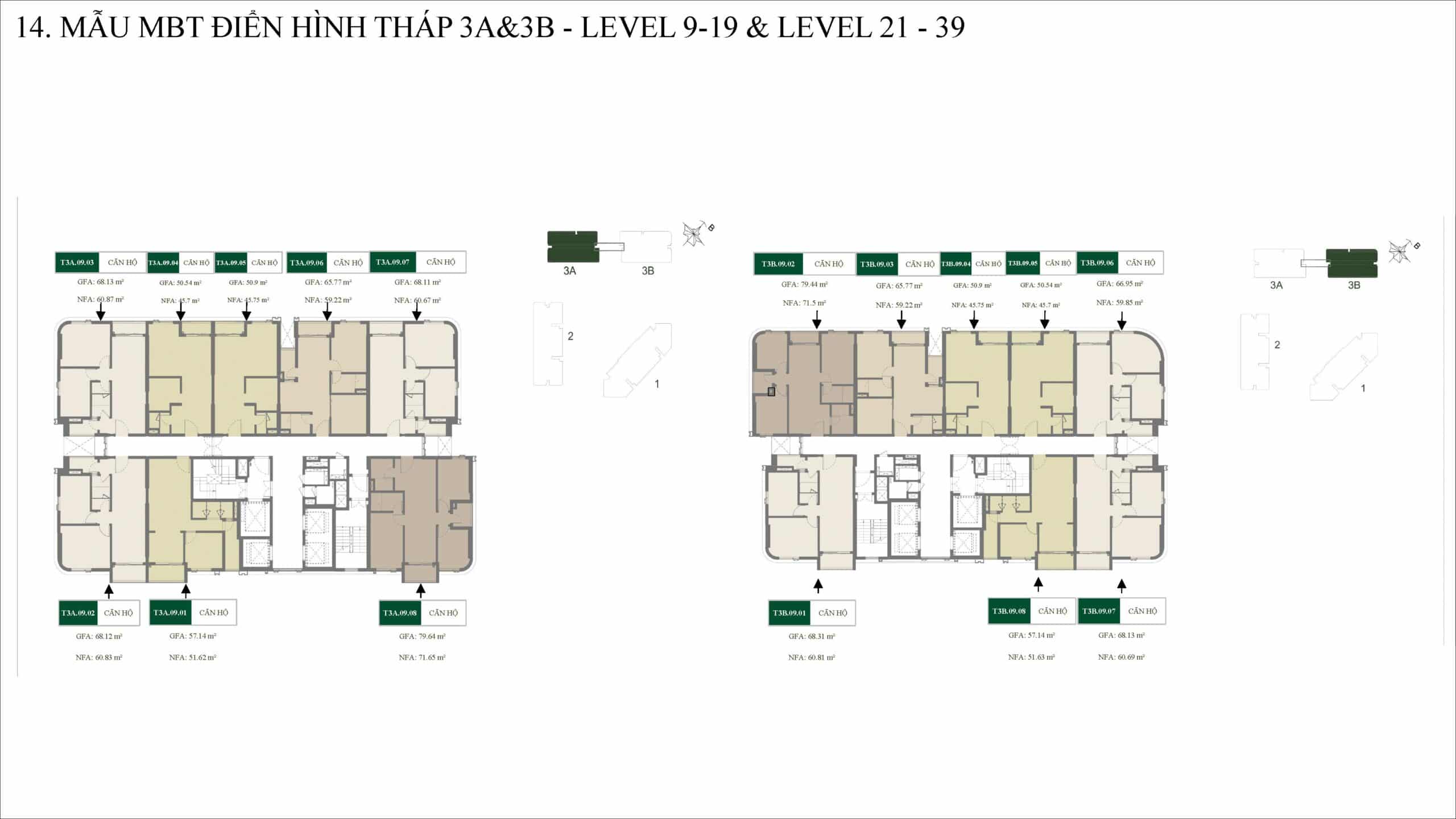 •3PN: 96 căn •3PN góc: 50 căn