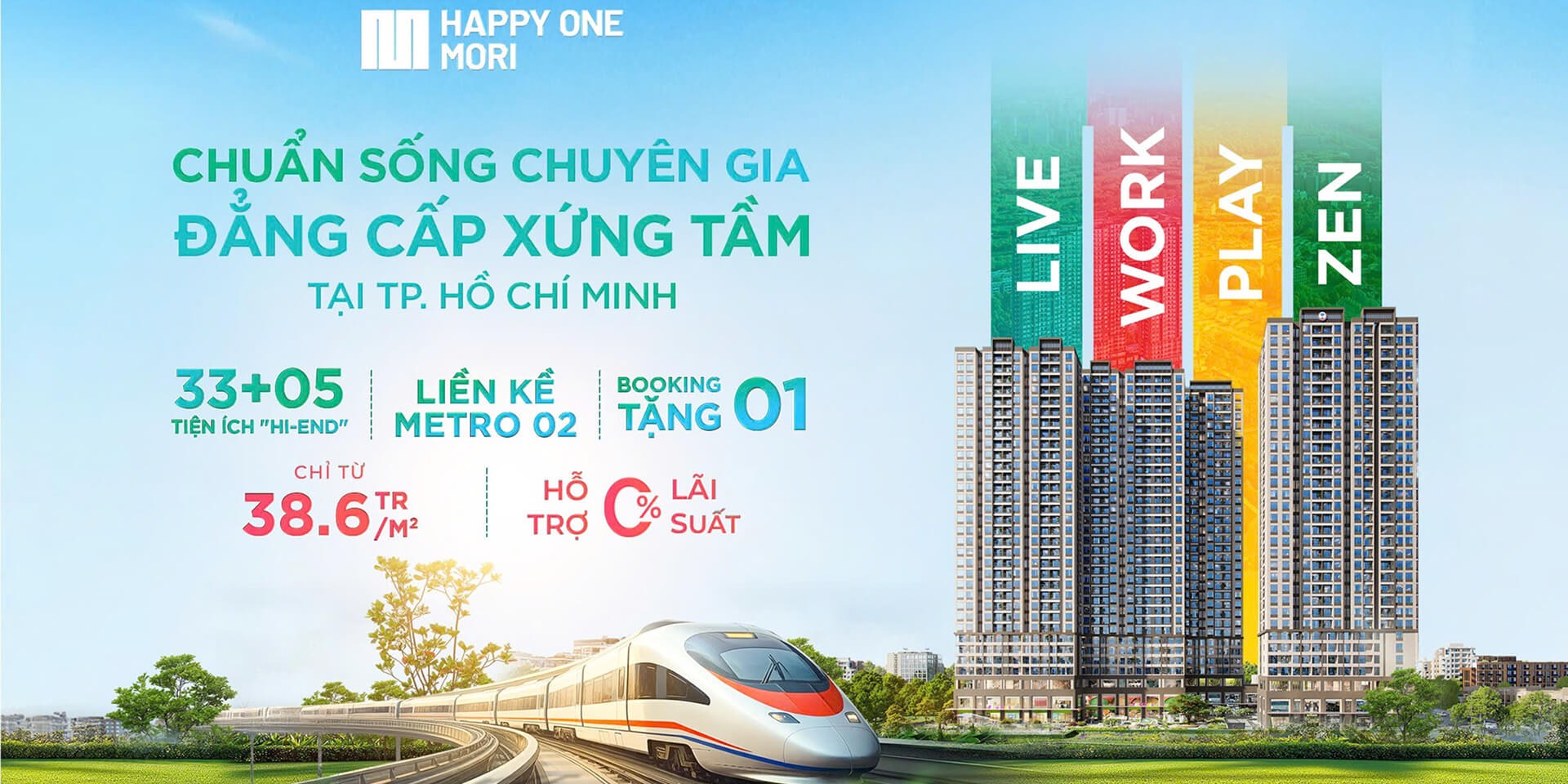 Happy One Mori là dự án căn hộ cao cấp mới nhất thuộc chuỗi thương hiệu “Happy One” nổi tiếng của Tập đoàn Vạn Xuân Group – đơn vị vừa được vinh danh “Nhà phát triển bất động sản tầm trung xuất sắc nhất Việt Nam” tại Dot Property Vietnam Awards 2025. Lấy cảm hứng từ khái niệm “Mori” trong tiếng Nhật – nghĩa là “khu rừng xanh”, dự án mang đến không gian sống an yên, ngập tràn thiên nhiên, kết hợp hài hòa giữa nhịp sống đô thị hiện đại và chất nghỉ dưỡng resort chuẩn Nhật Bản. Dự án chính thức khởi công vào ngày 9/8/2025 tại đường Lái Thiêu 14, phường Lái Thiêu, TP. Thuận An (Bình Dương), và đang được đẩy mạnh triển khai với cam kết tiến độ nhanh chóng, pháp lý hoàn thiện.